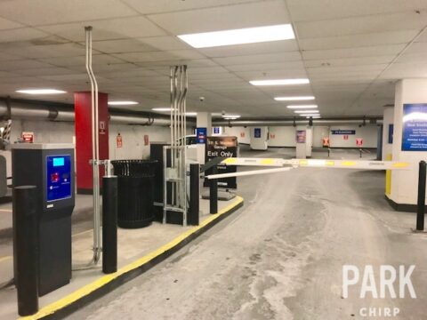The Franklin Street entrance serves as an entry Mon – Fri 12am – 3pm. It then switches to an exit Mon-Thurs 3pm – 12am and all weekend. NOTE: You cannot enter the garage off of Franklin after 3pm Mon – Fri. The Franklin Street entrance is accessed by heading north bound on S Franklin St. The garage is located on the left side of Franklin St. Look for the “Public Parking” sign located near the garage entrance. Parkers are only given access to the ground level of the building, and must use the Pedestrian Door located by the Chipotle at Franklin & Jackson to access the garage. After parking your car, you will proceed to the ground level, and exit out the door located between the elevators and the Pay on Foot Station.