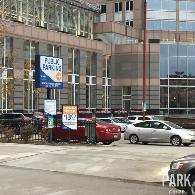 The lot is located on the northeast corner of Wacker and Van Buren. Entrances are located at 321 S Wacker Drive and 301 W Van Buren Street.