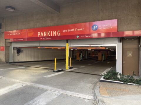 This garage consists of 2485 stalls (11 floors) with 7 EV stations. It is directly across from the Bonaventure and has 4 entrances located on Flower street, Hope street and 4th street. We hope to see you soon!