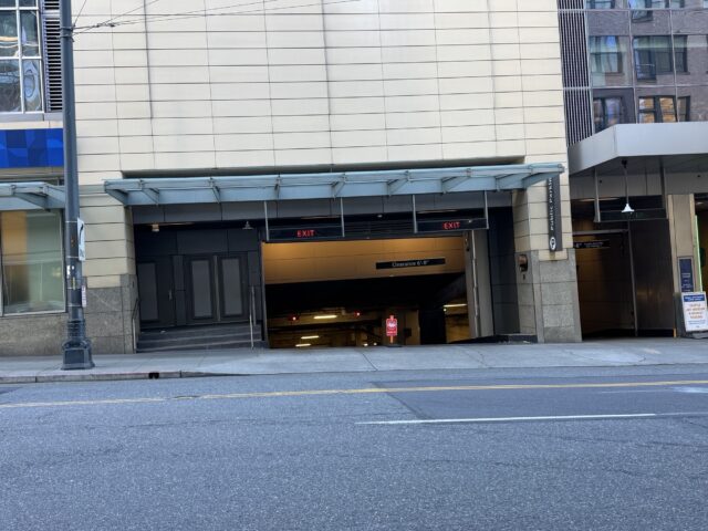 Inbound traffic: Take a left from 1st Ave to Union Street and enter the garage through the far-right lane or the middle reversible lane (open inbound 5am to 9am only).